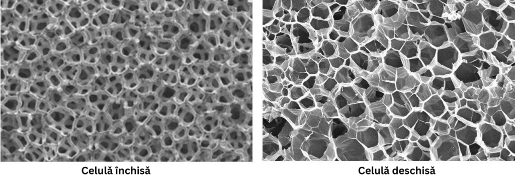 Denumirea de spumă poliuretanică cu celulă deschisă sau spumă poliuretanică cu celulă închisă provine din structura internă a celulelor care alcătuiesc materialul izolator. Această structură influențează direct comportamentul spumei din punct de vedere termic, al permeabilității la aer și al riscului de condens.